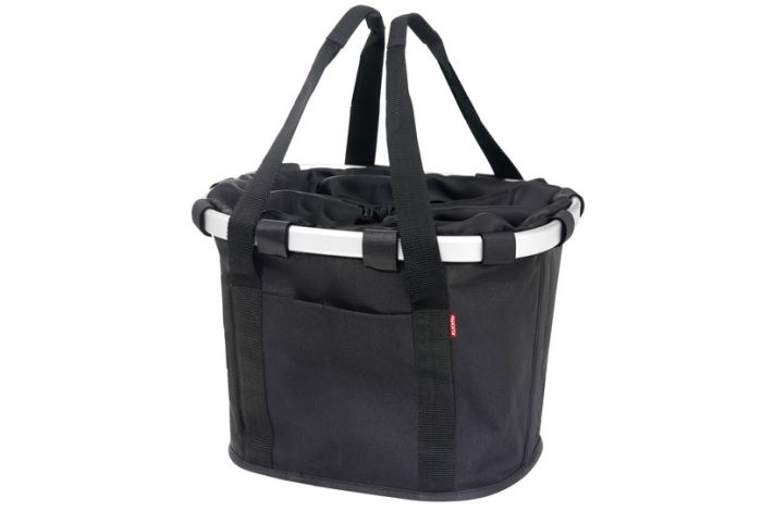 Ergebnis der Kooperation zweier starker Marken. Die schicke Textiltasche von Reisenthel mit dem markanten Aluminiumrahmen zum Anklicken am KLICKfix Lenkeradapter Universal. Auch ohne Fahrrad glänzt der Bikebasket als flotter Begleiter in der City. Alle Modelle sind mit Front- und Innentasche, Handyfach, Kordelverschluss und abnehmbarem Utensilientäschchen ausgestattet. Belastbar bis max. 5 kg.
