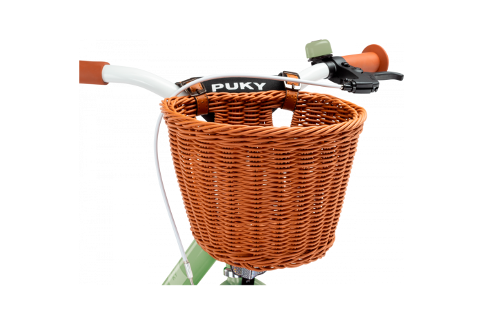 Geflochtener Lenkerkorb aus flexiblem Kunststoff.