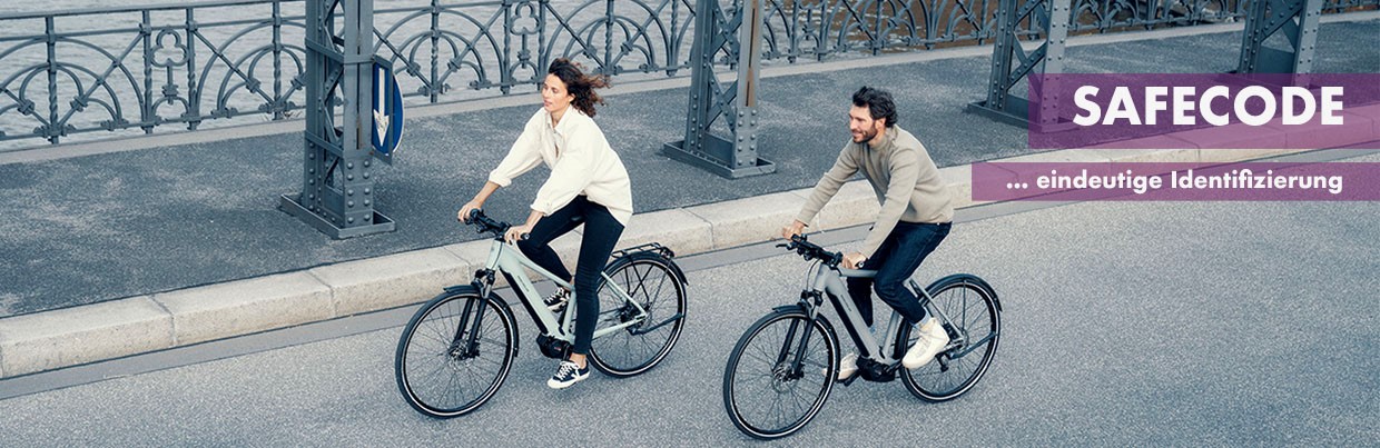 SAFECODE ist ein effizientes Produkt-Sicherungssystem. Durch eine Codierung (dem Safecode) am Fahrrad wird dieses eindeutig seinem Besitzer zugeordnet. Die Codierung erfolgt bereits bei uns in der Werkstatt und Du erhältst beim Kauf alle wichtigen Informationen mit Rechnung. Der Code beinhaltet alle Informationen zum Fahrrad. Rahmennummer, Schlüsselnummer vom Schloss und ggf. Akkunummern - alles auf einen Blick.