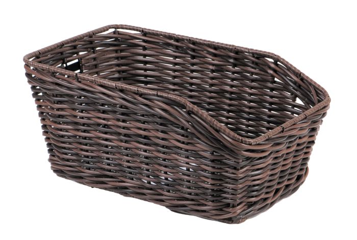 Geflochtener, längsorientierter Citykorb zur Festmontage auf dem Gepäckträger. Mit modischen, wetterfesten Kunststoffbändern in breiter oder schmaler Ausführung. Mit Abschrägung im Sattelbereich und stabilem Boden. Inklusive Befestigungselemente zur Befestigung in Fahrtrichtung des Rads.