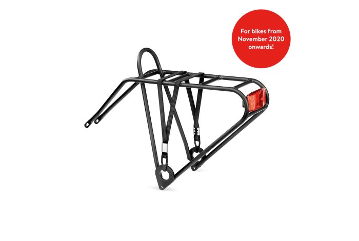 minimalistische Design machen den Gepäckträger zum robusten Leichtgewicht. Dank zweier elastischer Gurte ist der geliebte